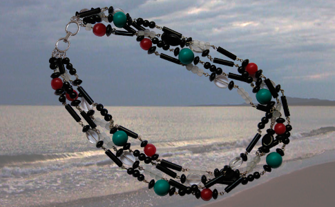 Línea realizada en Plata 925 - Cuentas de vidrio - Nácar- Onix - Uayruru - Turquesa